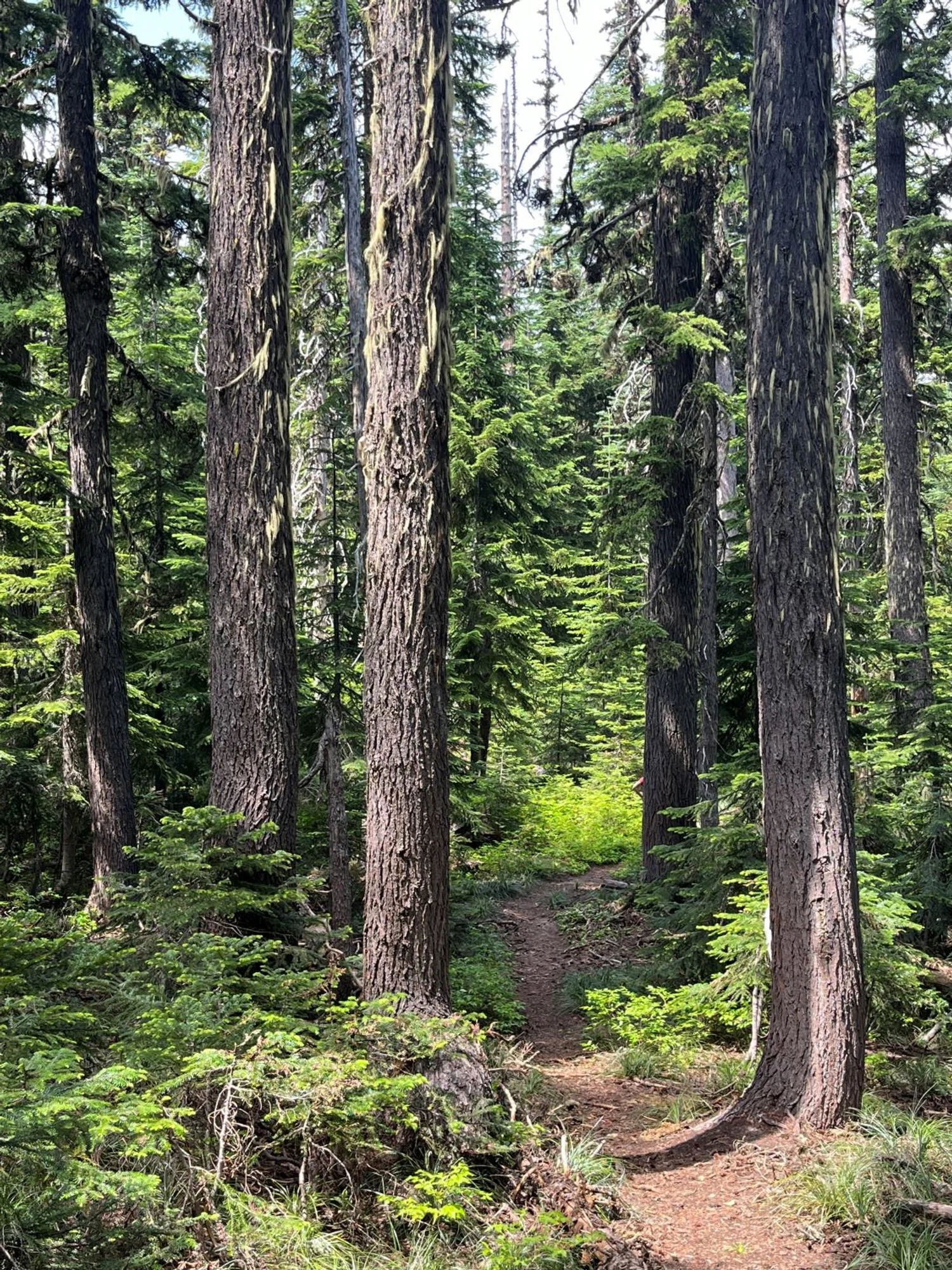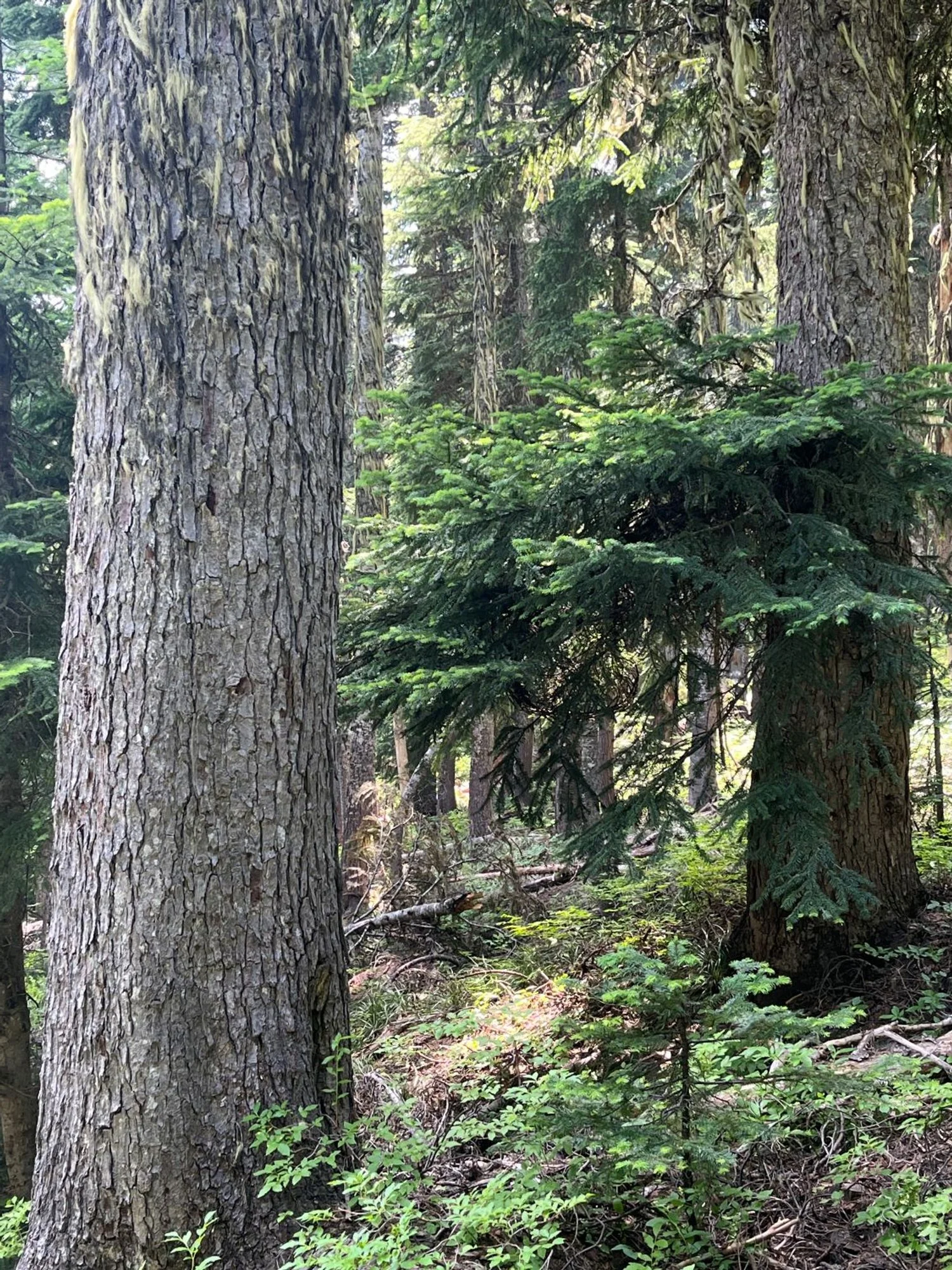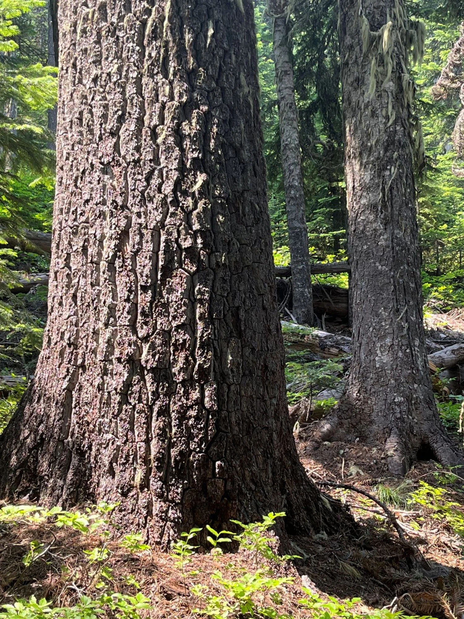 From Gumjuwac Saddle, head downslope to the east into the Badger Creek Wilderness on the Gumjuwac Trail (480). Shortly after leaving the saddle some large Englemann spruce accent an interesting dry meadow complex. The trail descends steeply along Gumjuwac Creek through a diverse species mix of older trees including mountain hemlock, Engelmann spruce, grand fir, Pacific silver fir and occasional western larch. Old Douglas-fir and ponderosa pine mix in on the warmer lower slopes as the trail nears Badger Creek.