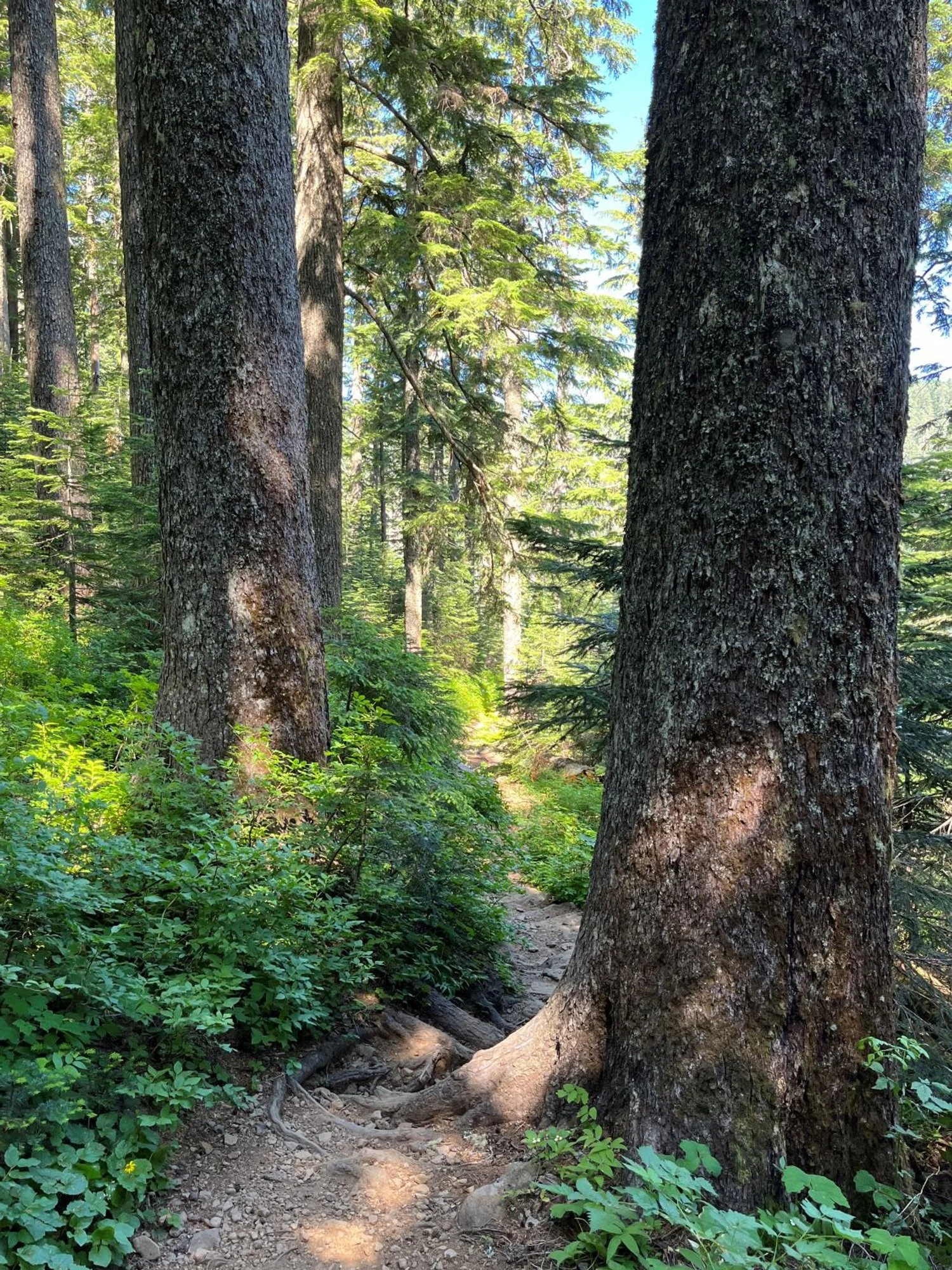 Most of the forest appears very little changed, though contingency fire lines were prepared across portions of the upper sections of this loop in response to the 2024 Whisky Creek Fire. The fire did not reach the trails described for this hike, and these locations have subsequently been reported as ‘restored.’ The loop has been slightly enlarged to include the old Pacific silver fir described above.
