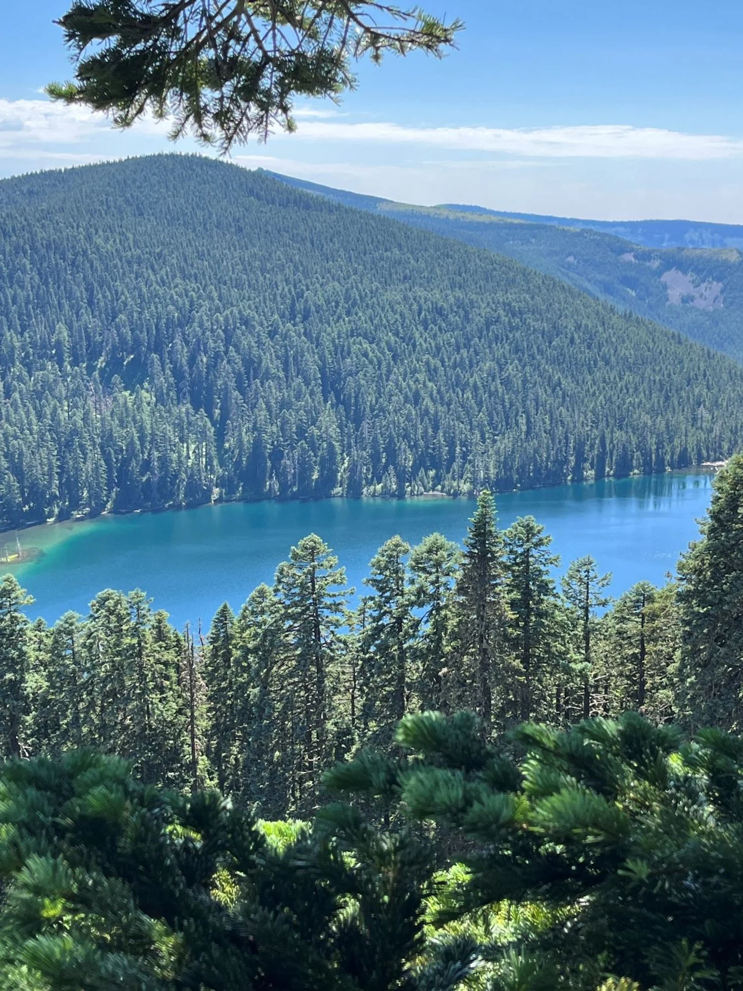 The Anthill Trail can be combined with portions of the Herman Creek Trail and the Pacific Crest Trail (PCT) to form an easy loop through the scenic mid-elevation old growth above Wahtum Lake. A particularly notable stand of ancient Pacific silver fir stands astride the trail at the northern end of the loop, and ridgeline vistas of Wahtum Lake and Mt. Hood open up on the southeastern leg. Note that fireline work and subsequent restoration occurred across the northern section of the loop in 2024 in response to the Whisky Creek Fire, though the impacts are not expected to be substantial.