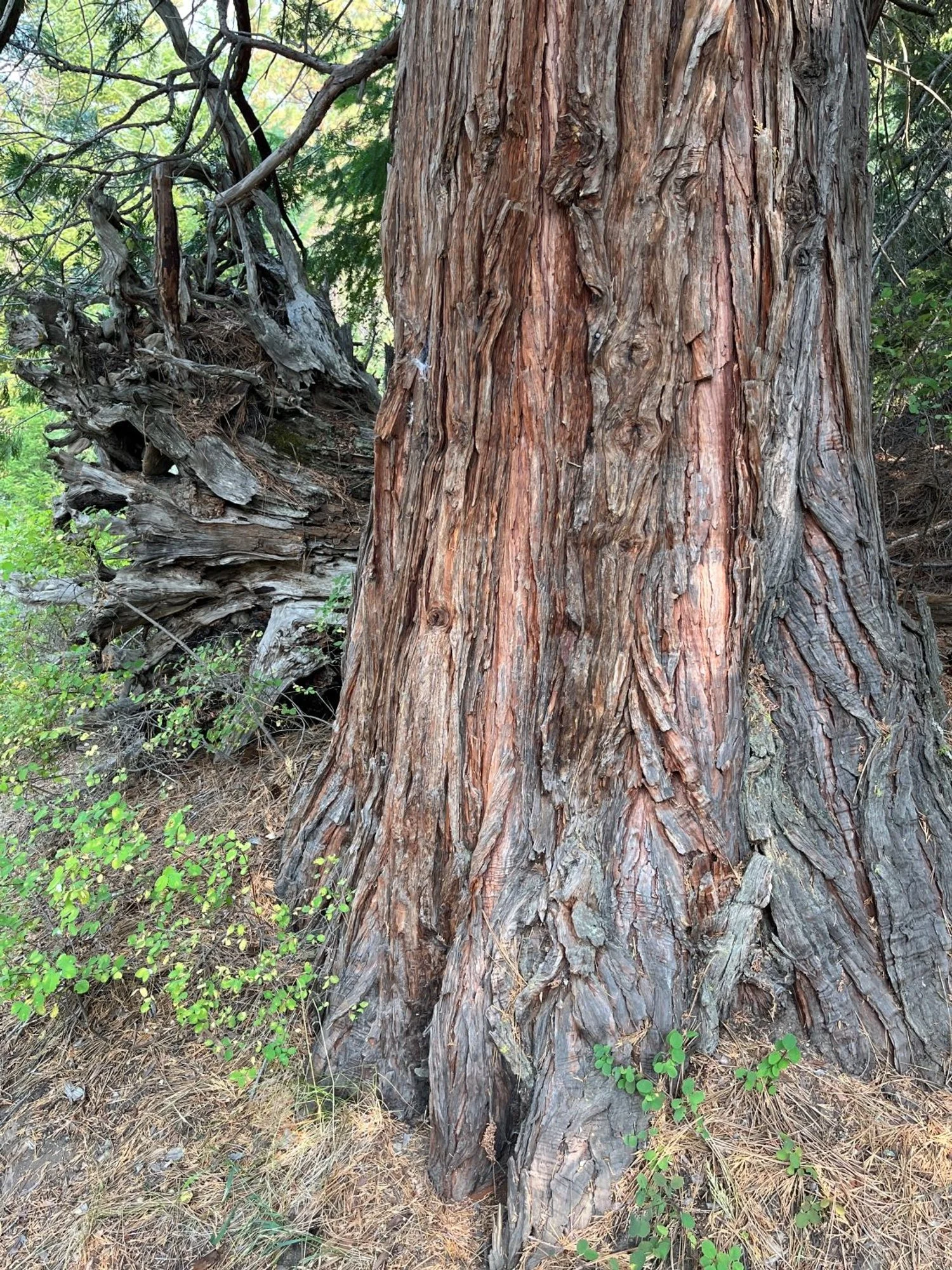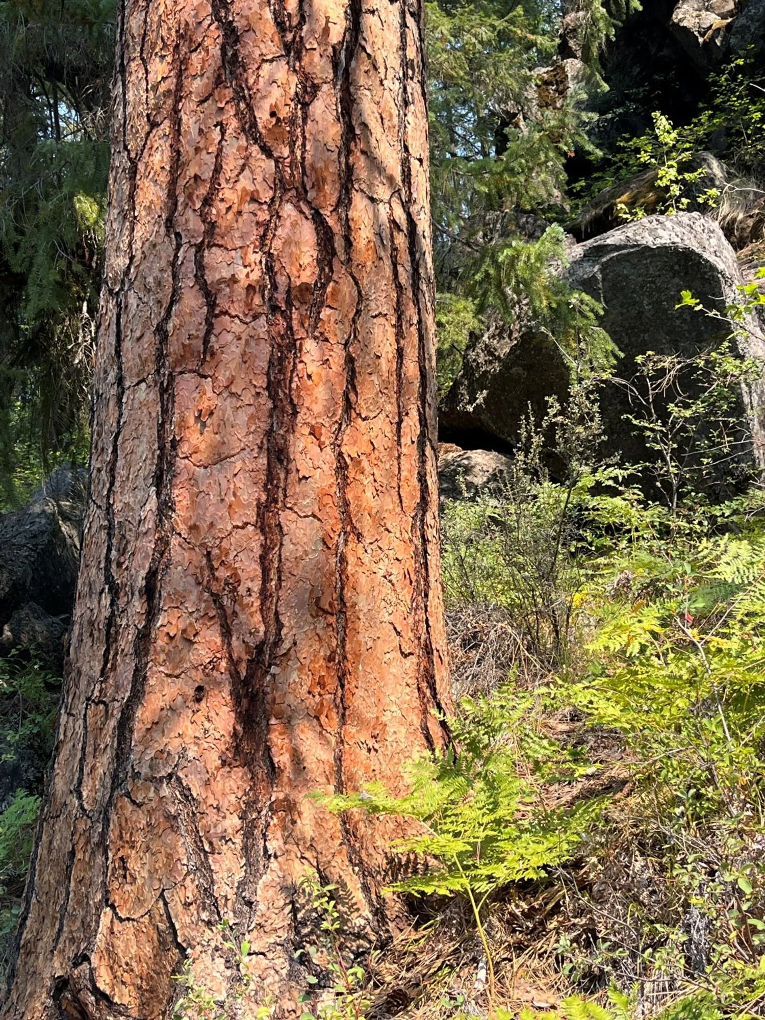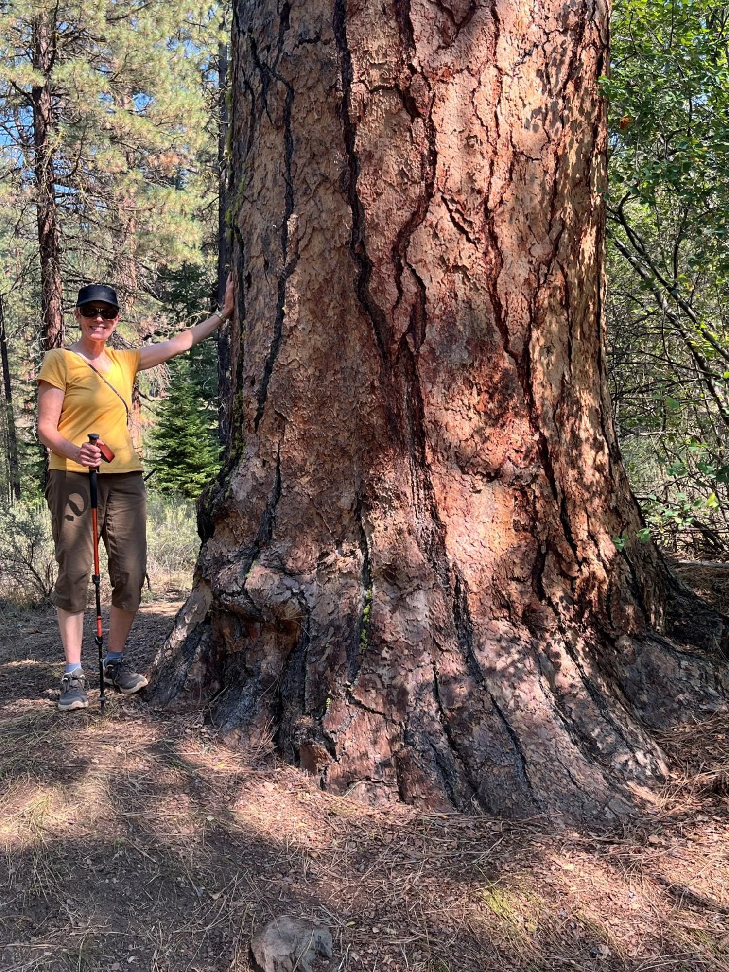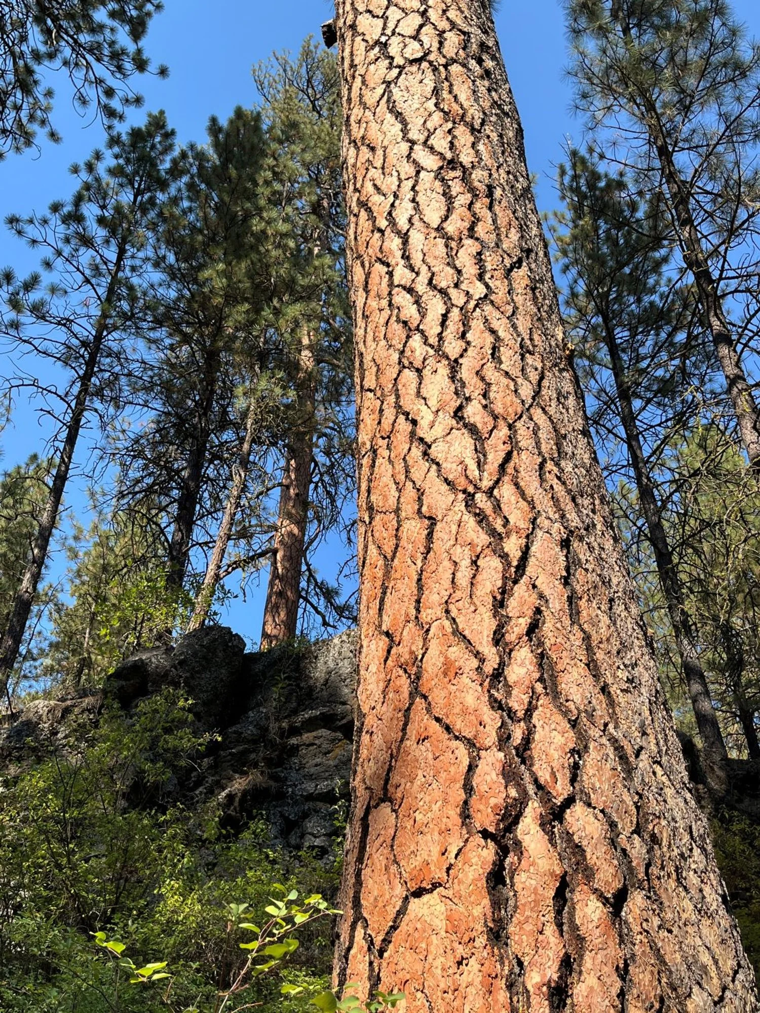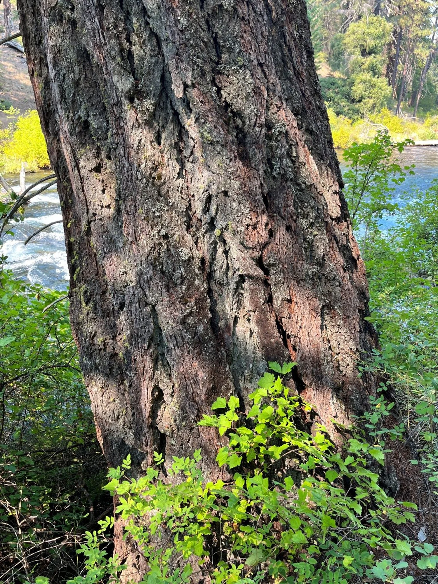 Head north East Metolius River Trail and almost immediately come to an enormous ponderosa pine standing by the river. This gnarly survivor, along with other huge pines in the vicinity, are remnants of an age class much older than most pines in the Metolius area, most likely between 500-600 years old. Most of the old pines in the vicinity range from 250-300 years old, although there is tremendous range in the age of Metolius pines. The oldest pine measured in the nearby Metolius Research Natural Area is approximately 640 years old.