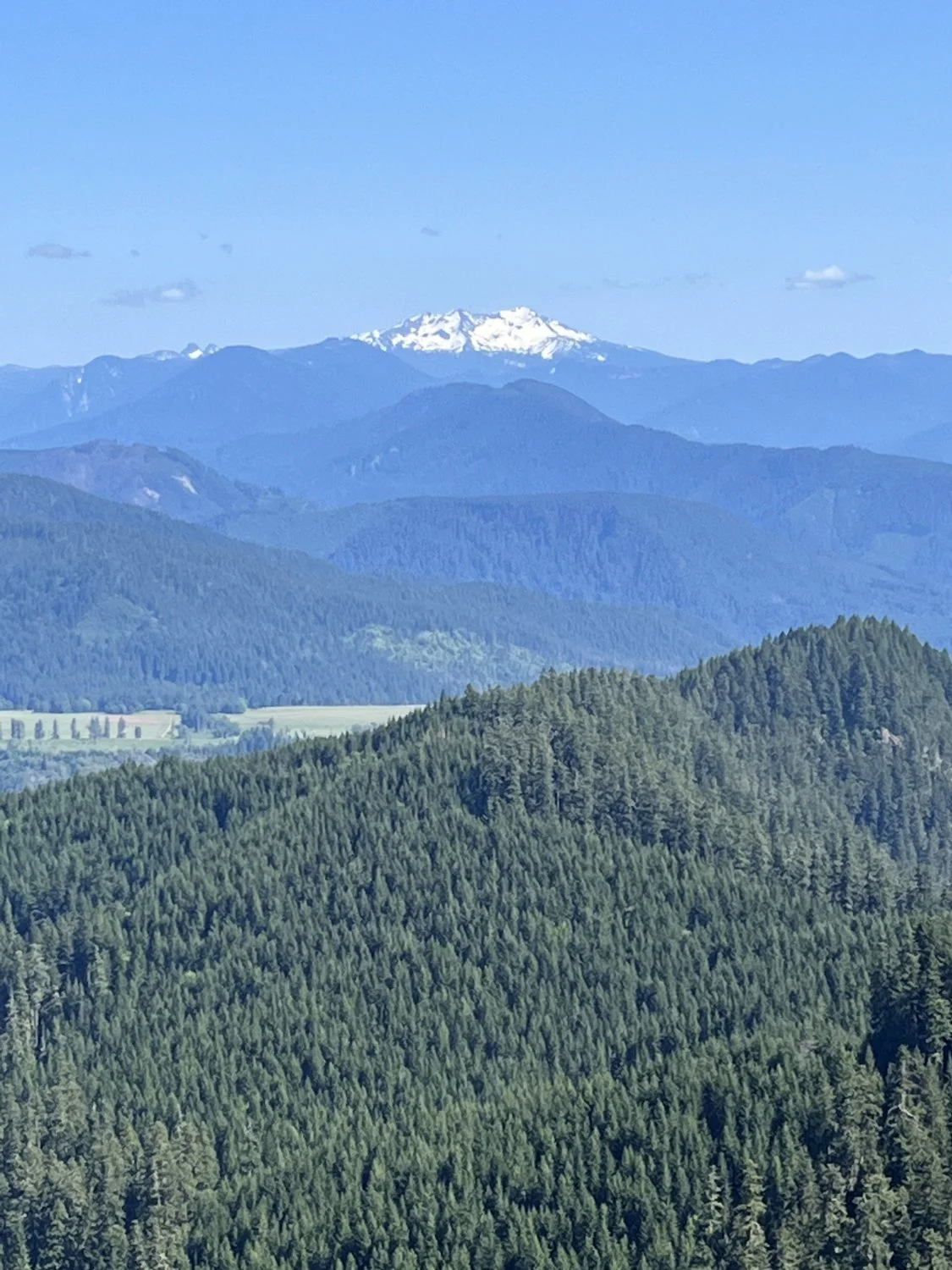 Quiet patch of chunky Douglas-fir old growth; ridgeline patches of older forest interspersed with meadows.