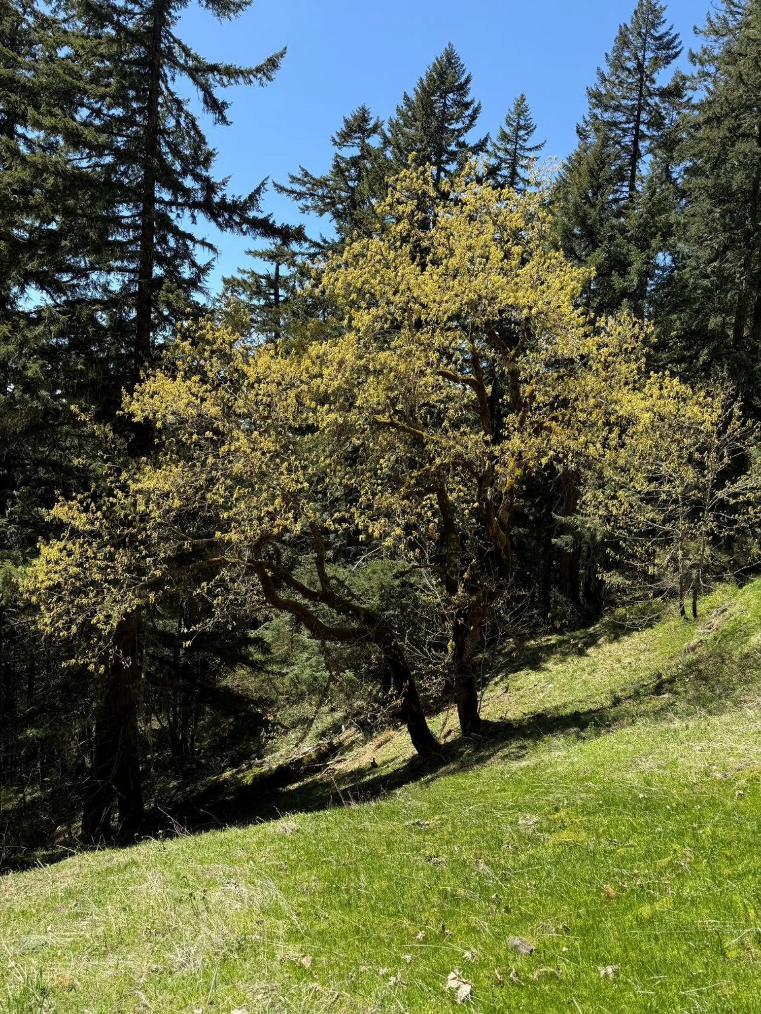 Mature forest patches have become noticeably more old-growthy along the eastern approach; mountain bike use common now.