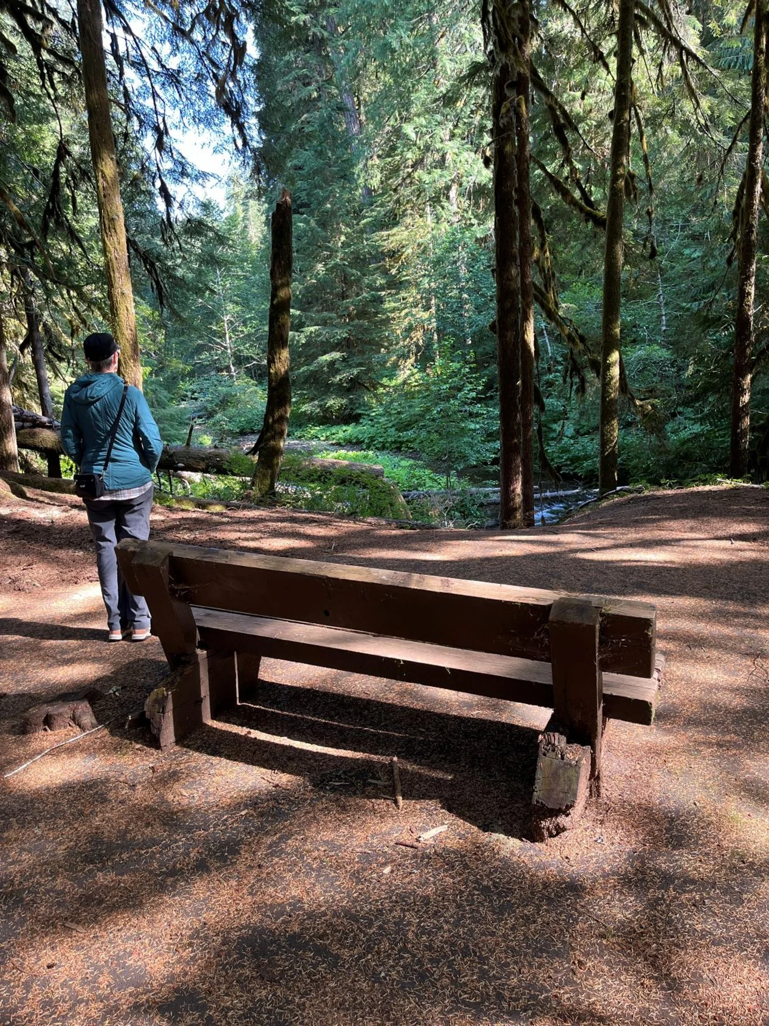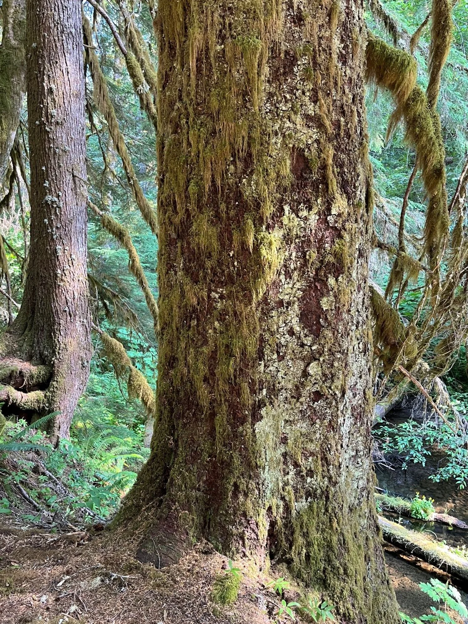 The Lost Creek Nature Trail (776) is paved and barrier-free offering an opportunity for folks of any age or ability to experience big trees in a peaceful forest setting. The pavement is showing its age, however, and wheelchair users will need a little muscle to deal with surface bumps and irregularities. The loop parallels gurgling Lost Creek, and has benches and short trail extensions to the stream, and to an old, abandoned beaver pond. Interpretive signs explain important features of the ecosystem.