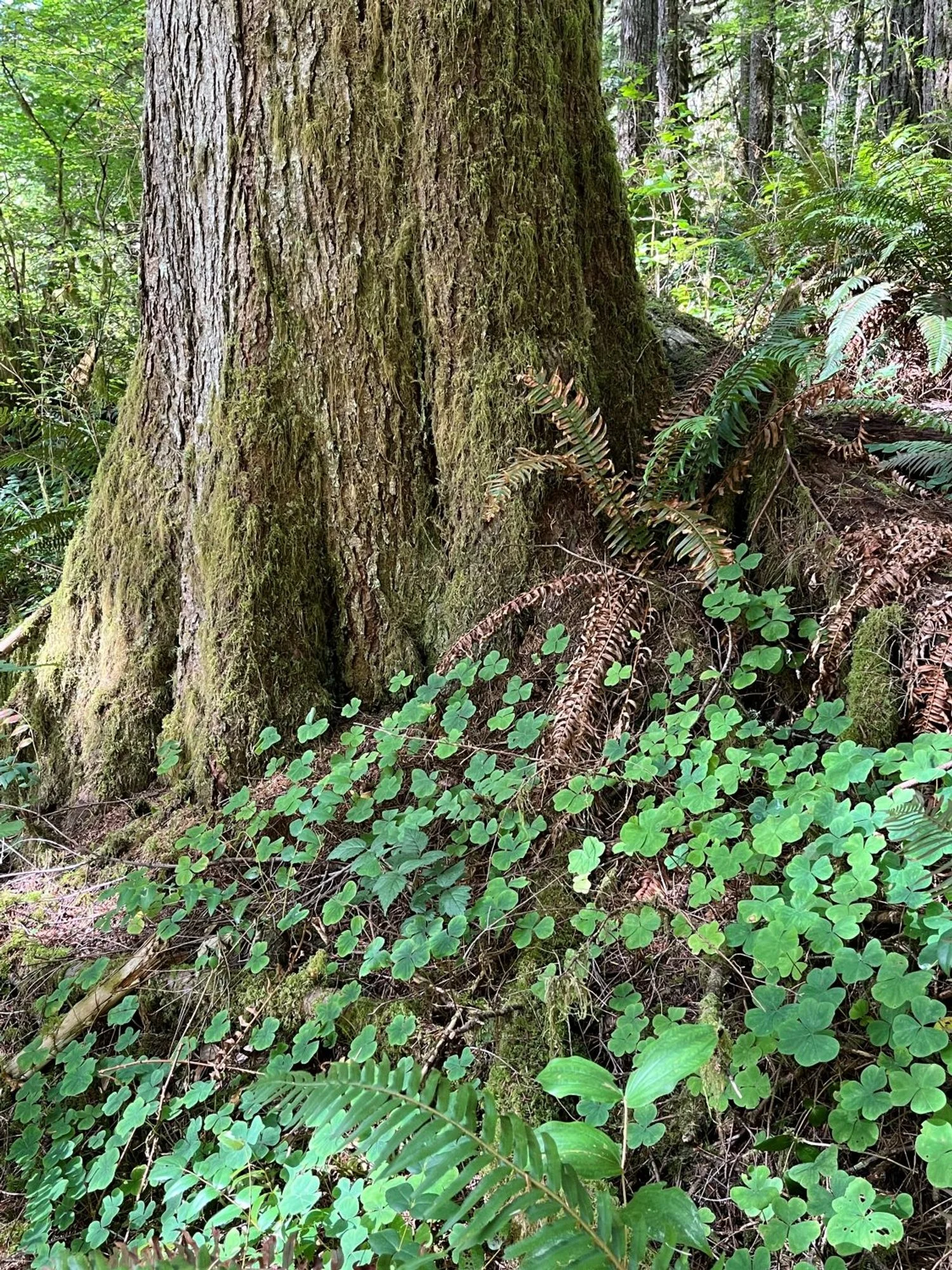 Thirty years ago, the forest along Eagle Creek could have been described as mature possessing some characteristics of old growth, e.g., abundant dead wood from the prior stand, but not really of the stature and structure of fully developed old growth. Now, thirty years later, the forest has matured into old growth by anyone’s definition, aided in this maturation process by the highly productive sites near Eagle Creek. Extensive areas of oxalis and swordfern along the trail are indicative of high growing potential in the valley. High growth rates accelerate development of large trees and dead wood, and more rapidly lead to a more diverse canopy, both vertically and horizontally.